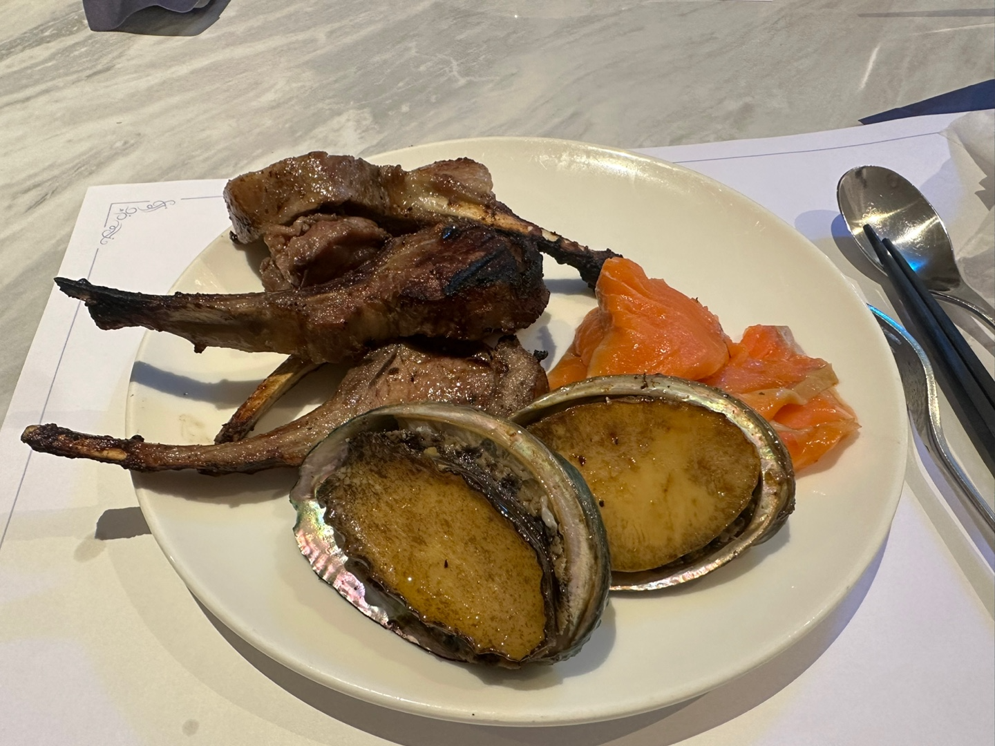 양고기와 전복구이입니다.
